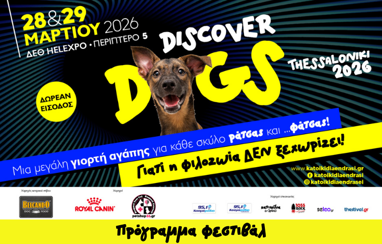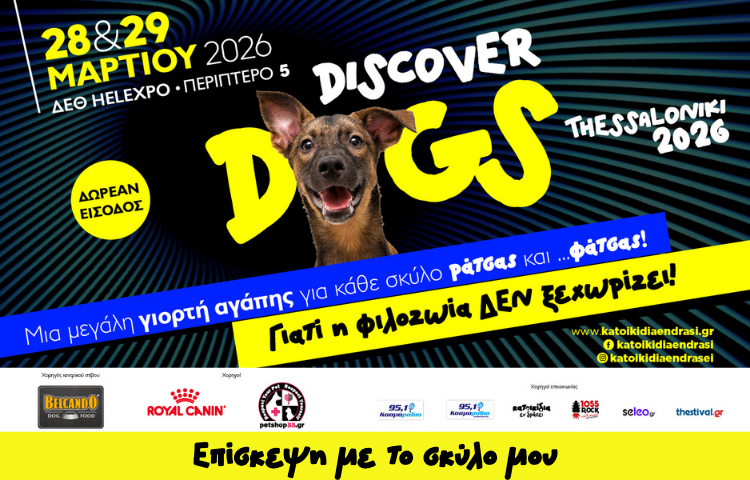 Το Discover Dogs 2026 επιστρέφει ως η μεγαλύτερη και πιο ολοκληρωμένη γιορτή για τον σκύλο και τους ανθρώπους που τον αγαπούν. Ένα φεστιβάλ αφιερωμένο σε κάθε σκύλο –μικρό ή μεγάλο, αδέσποτο ή δεσποζόμενο– χωρίς διακρίσεις, με μοναδικό γνώμονα την αγάπη και τον σεβασμό. Στον πυρήνα της διοργάνωσης βρίσκεται η φιλοζωία…