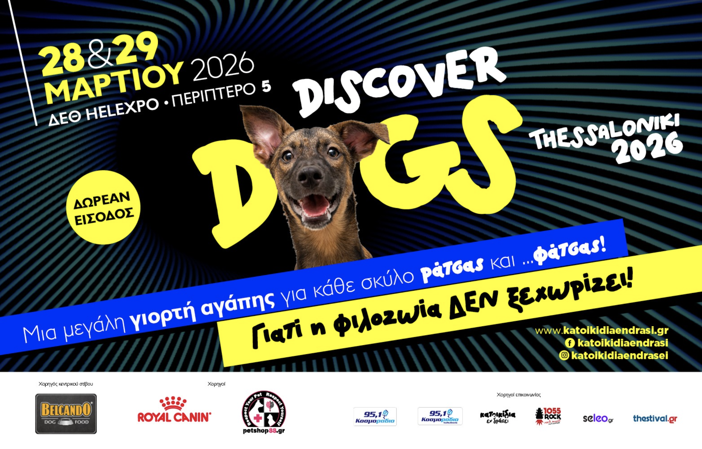 Το Discover Dogs επιστρέφει ανανεωμένο και πάντα φιλοζωικό! Επιστρέφει ως μια μεγάλη γιορτή αγάπης για τον σκύλο – για κάθε μουσούδα και κάθε πατούσα, για κάθε σκύλο, μικρό ή μεγάλο, αδέσποτο ή δεσποζόμενο, καθαρόαιμο ή ημίαιμο. Γιατί όταν αγαπάς αληθινά, δεν ξεχωρίζεις.
